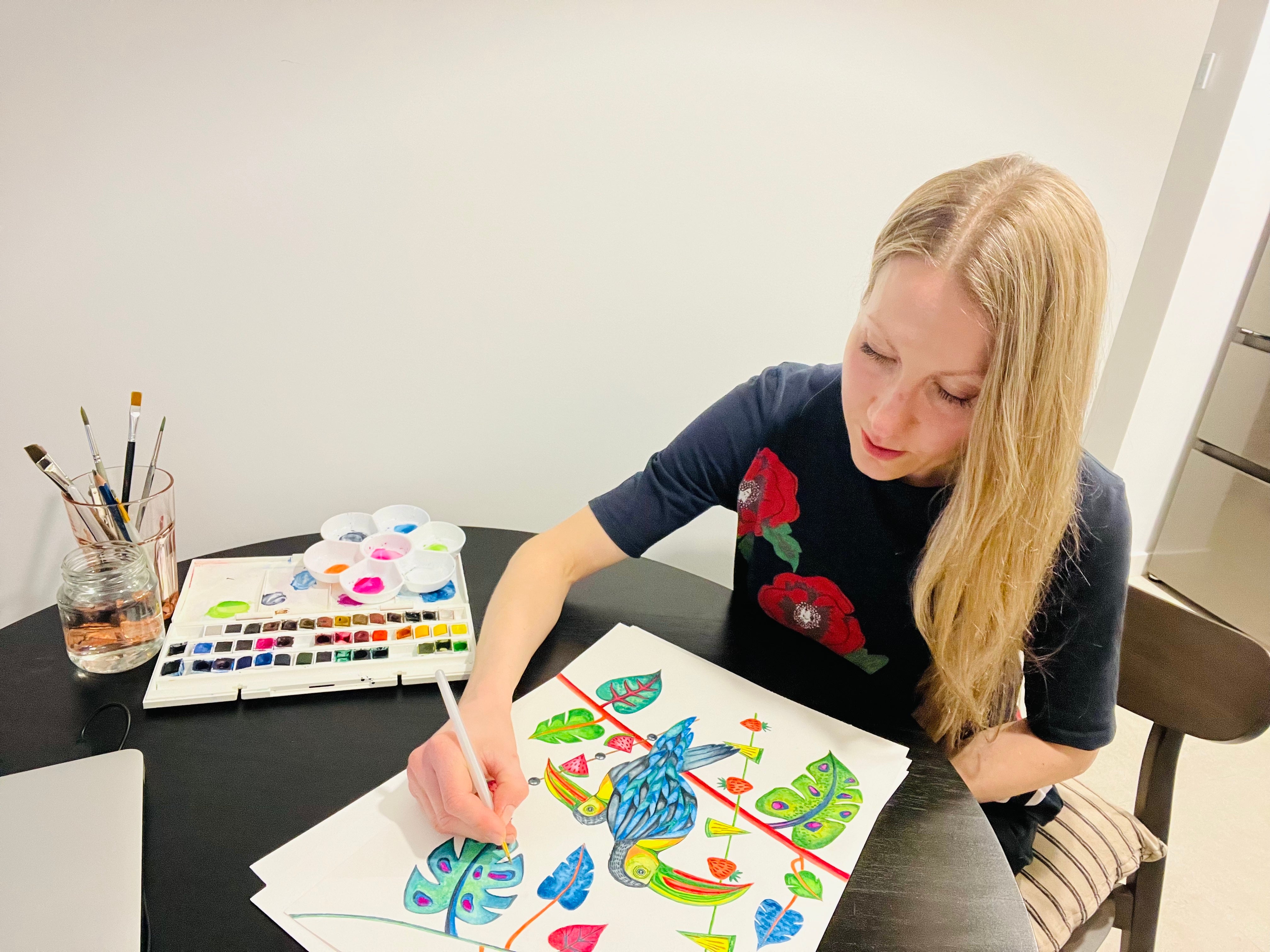 I'm Elina Sondore, a Latvian artist based in the Basque Country, Spain, with a BA (Hons) in Fine Art from De Montfort University, UK. I paint all my illustrations by hand using watercolor, driven by a need to express emotion and explore identity through symbolic animal characters, wings, and vivid patterns. My work is inspired by personal experiences, music, and the contrasting influences of growing up in the late 20th century. I often begin with just a loose idea and let the painting evolve naturally, embracing the unexpected and layering details over time. Painting is where I feel most grounded and free—it’s a joyful, meditative process that helps me reflect and connect with the world around me.